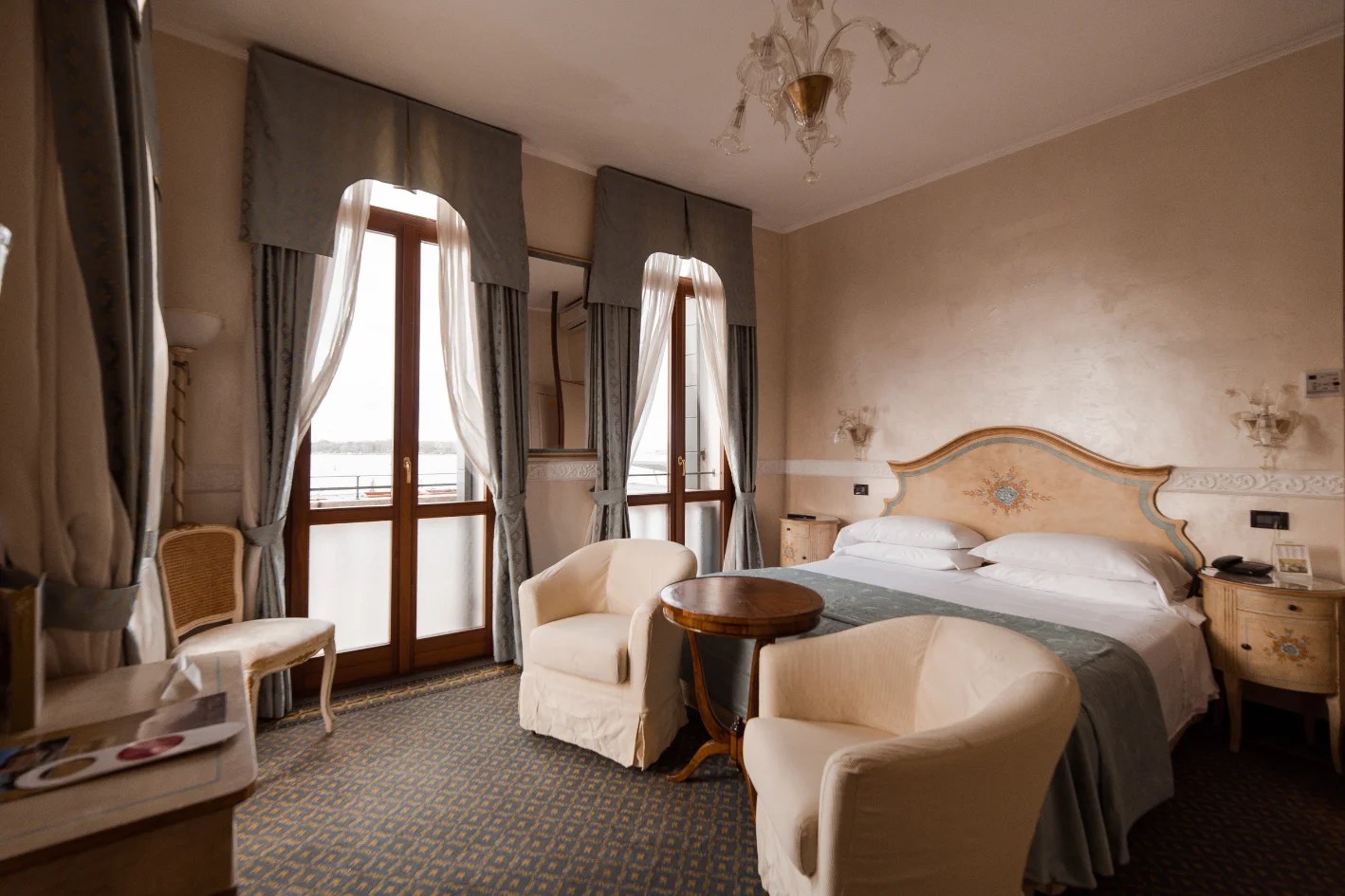 The Hotel Riviera, one of the first establishments built on the Venice Lido, welcomes you to its spacious and elegant entrance hall, featuring marble floors and Murano chandeliers. It offers a wide selection of stylish rooms, each individually furnished with meticulous attention to detail. Guests can enjoy views of Venice, the lagoon, or the ‚Gran Viale’—the grand boulevard.